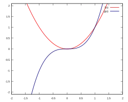 So by the monotonicity criterion, is monotonically increasing on and strictly monotonically increasing on and . The cubic power function is even strictly monotonically increasing on all of .