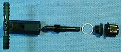 Another means of blocking liquid is to pass the flow through a textile filter. The dry filter passes the gas phase. Surface tension of a liquid phase prevents flow through the textile. Therefore the filter blocks liquid flow. A contaminated and blocked filter must be discarded and replaced.