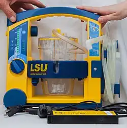 Suction is indispensable to clear the airway of blood, mucous, vomitus or other obstructing material. Consequently, suction machines can be found in emergency rooms, ambulances, patient wards and cafeterias.
