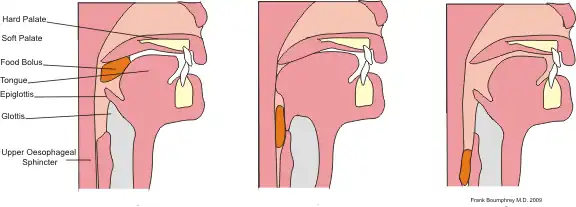 - The tongue pushes a bolus of food against the soft palate triggering the swallowing reflex.