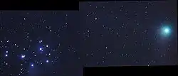 Charles Messier measured the position of the cluster and included it as M45 in his catalogue of comet-like objects, published in 1771. Along with the Orion Nebula and the Praesepe cluster, Messier's inclusion of the Pleiades has been noted as curious, as most of Messier's objects were much fainter and more easily confused with comets—something which seems scarcely possible for the Pleiades. One possibility is that Messier simply wanted to have a larger catalogue than his scientific rival Lacaille, whose 1755 catalogue contained 42 objects, and so he added some bright, well-known objects to boost his list.[5]