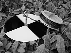 A secchi disk may be used in the field to measure the relative turbidity of brine or water. A secchi disk is a circular plate of metal with a diameter of 30-40 cm. The surface is painted in 4 segments, alternating black and white. The secchi disk is suspended from its centre point by a length of rope. It is helpful if the rope has distance indicators marked on it.