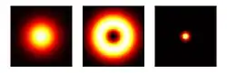 However, blurring is not caused by random processes, such as light scattering, but can be well defined by the optical properties of the image formation in the microscope imaging system. If one considers a small fluorescent light source (essentially a bright spot), light coming from this spot spreads out further from our perspective as the spot becomes more out of focus. Under ideal conditions, this produces an "hourglass" shape of this point source in the third (axial) dimension. This shape is called the point spread function (PSF) of the microscope imaging system. Since any fluorescence image is made up of a large number of such small fluorescent light sources, the image is said to be "convolved by the point spread function".