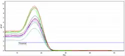 qPCR permits the identification of specific, amplified DNA fragments using analysis of their melting temperature. This is usually done with double-stranded DNA-binding dyes as reporters (e.g. SYBR Green). The DNA melting temperature is specific to the amplified fragment. The results of this technique are obtained by comparing the dissociation curves of the analysed DNA samples.