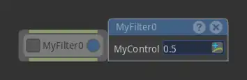 addFloatControl creates the GUI widget and adds it to the node parameters window. Its arguments are the variable name, used inside the shader source, and its 2nd argument is its initial value.