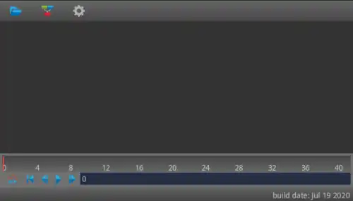 At the top is the app bar with 3 buttons. Just below is a big empty area, that's the node-graph window, because it has no nodes it looks empty. Below is node-graph window is the timeline that contains play buttons and a play bar. At the bottom end is the status bar used to show usefull tips and information.