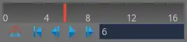 The play-bar, located above the player toolbar, allows the quick navigation through frames. Clicking and dragging in the play-bar changes the current frame. A red vertical line, called the play head, shows where the current frame number is in the play-bar scale.