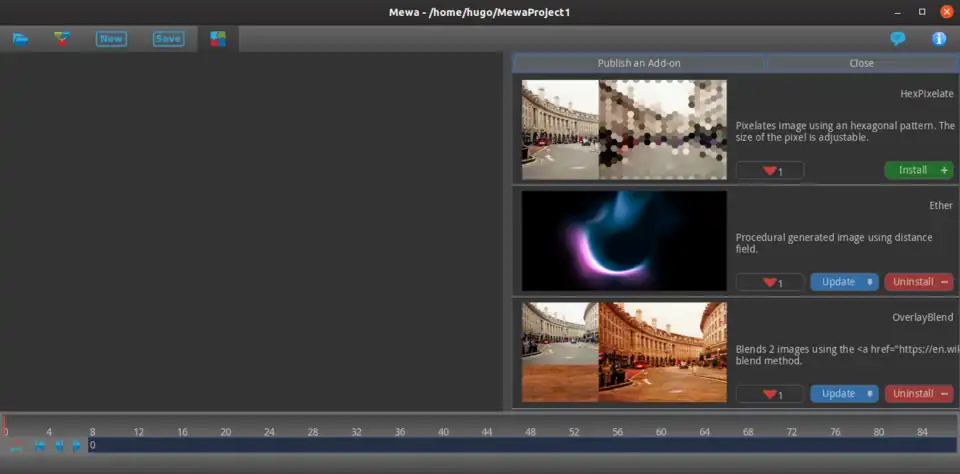 For those who know GLSL programming, check out how to create custom nodes using a GLSL shader at Extending Mewa with custom shaders.