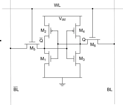 Static RAM (SRAM) is a type of memory storage that uses 6 transistors to store data. These transistors store data so long as power is supplied to the RAM and do not need to be refreshed.