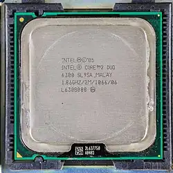 The Intel Core 2 is an example of a symmetric multi-core processor. The Core 2 can have either 2 cores on chip ("Core 2 Duo") or 4 cores on chip ("Core 2 Quad"). Each core in the Core 2 chip is symmetrical, and can function independently of one another. It requires a mixture of scheduling software and hardware to farm tasks out to each core.