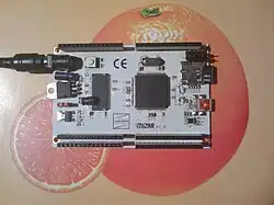 Congratulations! You have in your hands the manual for the Mizar32, a 32-bit computer based on the AVR32 processor at 66MHz with 32MB of main memory, mass storage on SD card, a USB connector, a light, two buttons, a JTAG port and six bus connectors. The bus connectors let you add other stackable hardware modules such as serial ports, ethernet, a 16x2 character LCD display and a VGA/keyboard/mouse/audio board based on the 8-core Propeller processor and your own custom boards.