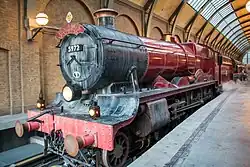 The Hogwarts Express is a train that travels between Platform 9 and Three Quarters at King's Cross Station in London, and Hogsmeade Village, the station for Hogwarts School of Witchcraft and Wizardry. It is a special train that carries students to school in September and brings them back to London in June or July.