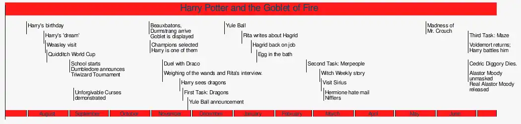 There is one leap of faith: In Harry Potter and the Chamber of Secrets, The Very Secret Diary is mentioned as being "fifty years old", as is Tom Riddle's citation for "services to the school". While it is likely that Lucius Malfoy would have thought it a rare joke to send Riddle's diary to Hogwarts on its fiftieth anniversary, it is possible that "fifty years" in this case means "about fifty years". However, in order to clarify sequence, we have assumed that "fifty years" means exactly that. All dates based on that, however, have an uncertainty of about five years either way – this includes all dates for things occurring in the early life of Tom Riddle.