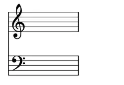 Written music is presented on one or more staves, which represent a set of notes that may be played in time across one or more instruments. Most contemporary music will consist of a pair of staves, as per this example, showing treble and bass clefs. Staves are divided into regular periods, known as measures or bars. The duration of a measure in a given piece of music is specified with a time signature, which is shown next to the clef. Contemporary music often uses 4/4 and 3/4 time signatures.