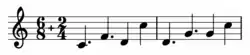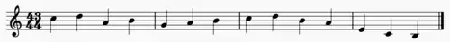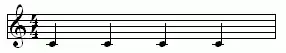Occasionally, there maybe be more than one time signatures denoted (with the time signatures following the second usually being written in brackets). This denotes that the time signature alternates between those time signatures in that order. For example, the figure on the left shows four measures, with the first and third measures being in 4/4 time and the second and fourth measures being in 3/4 time.