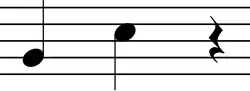 The quarter note (also called crochet) and rest, each being one-quarter the length of the whole note and half the length of a half note: