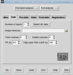 In FSL, the functional images could be analyzed in two integration workflows, rather than step-by-step as in SPM and AFNI. Analysis for an experiment can be set up in less than 1 minute and finished in 5-20 minutes for the first-level session, producing a web page analysis report, including colour activation images and time-course plots of data vs model.