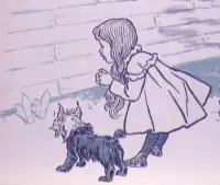 Kand disi homes proximeskad li hause vor Dorothy stead in li porte, les pausad e chuchotad a mutu, quasi pavorosi ye veni plusim. Ma li mikri, oldi fema marchad til Dorothy, flekted basim e dikted, kun dolsi voise: