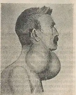 A Goitre is a large soft thyroid mass which forms as the body adapts, to concentrate sufficient electrolytes to manufacture adequate thyroid hormones, in response to dietary lack of Iodine. Exopthalmos is the protrusion of the eyes in Hyperthyroidism. Mood alterations are sometimes misdiagnosed as Endogenous depression or mania depending on the direction of affective deflection.