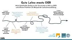 The communication and activation for participation can always be taken into consideration at the beginning of the project and started early, telephone or personal enquiries with the participants as well as mail/internal mail communication (confidence building) can be planned as an elaborate work package. This can be worthwhile, since one of the results of the MSD was that many actors at the University of Cologne have to make common practices possible and that OER issues do not only concern individual persons.