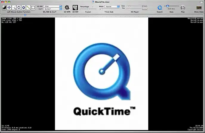 A Quicktime movie opened in OsiriX