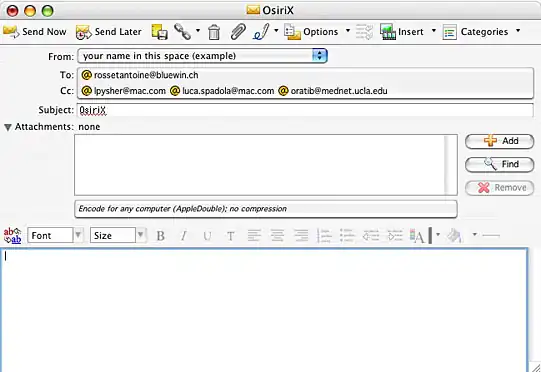 This selection will fire up your default e-mail program and compose an empty message to the OsiriX development team, as shown in the image below: