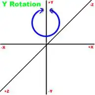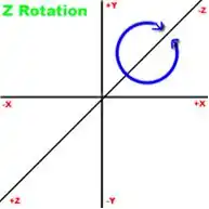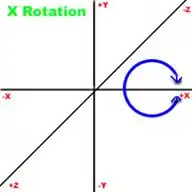 Rotation of an object involves moving an object around an axis. So if you were to rotate an object on the x-axis, then the object will rotate in a circle around the x-axis. This is the same with the other axis: