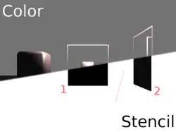 Since we can look at our portal sideway, or draw it using another shape than a rectangle, the scissors are not enough, so we'll use the stencil buffer.