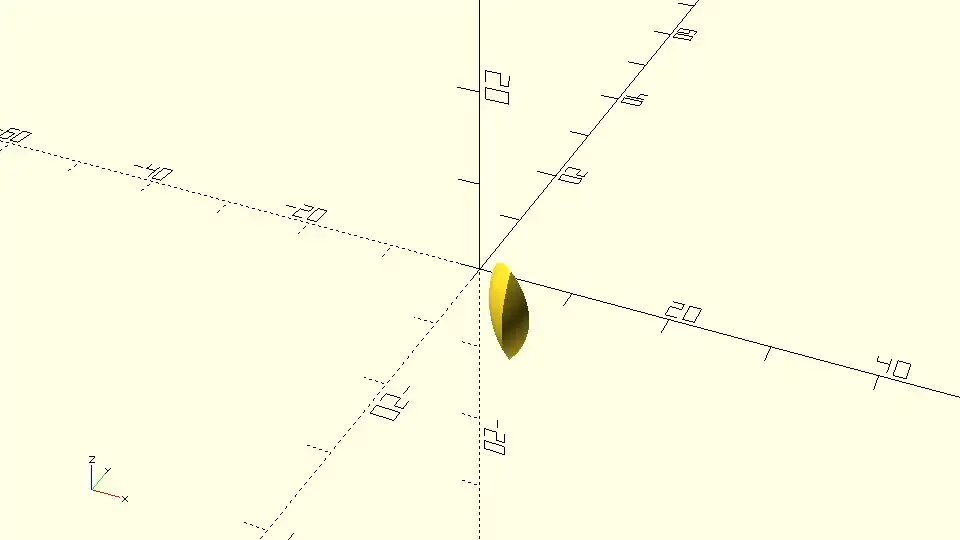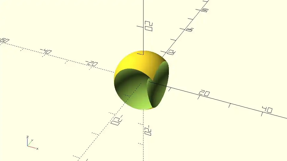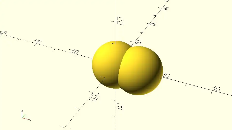 When only the first two spheres are defined inside the curly brackets, the intersection is the following.