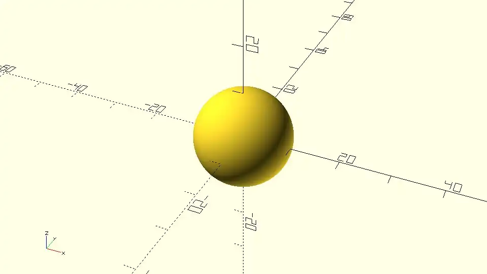 So far you have been using the cube and cylinder primitives. Another 3D primitive that is available in OpenSCAD is the sphere. You can create a sphere using the following command.