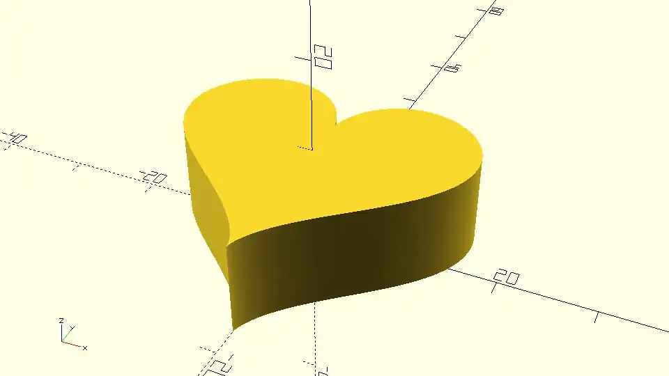 From the above examples it should be quite obvious that the polygon primitive opens up possibilities to create objects that would hardly be possible by just using the fundamental 2D or 3D primitives. In these examples you created custom 2D profiles by defining the coordinates of their points according to a given design. To unlock the true power of the polygon command though, and to create even more complex and impressive designs, you have to programmatically define the points of your profiles using math. This is because defining each point separately is not scalable to the hundreds of points that are required to design smooth non-square profiles. One example of this is the following heart. Can you manually define the required points to create it? There is no way.