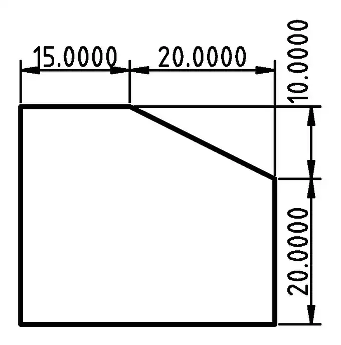 One way to go about designing this part without using the polygon primitive would be to start from a square that corresponds to the outer dimensions of this part and then subtract a properly rotated and translated square from its top right corner. Calculating the proper angle of rotation and amount of translation would be a time-consuming task. Additionally, following this strategy for a more complex object wouldn’t be possible. Instead, you can create this object using the polygon primitive in the following way.