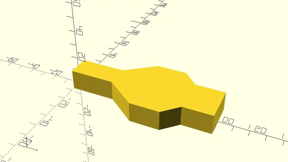 … polygon([[0, 0], [0, 30], [15, 30], [35, 20], [35, 0]]); … |