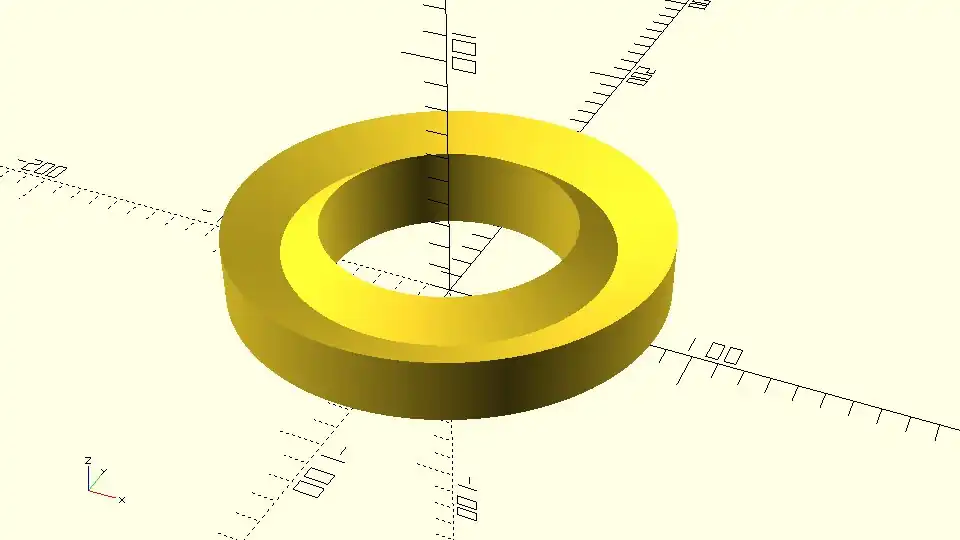 | Using the linear_extrude and rotate_extrude commands create a tube and a ring respectively that have the above profile. The tube should have a height of 100 units. The ring should have an inner diameter of 100 units. How many units do you need to translate the 2d profile along the positive direction of the X axis to achieve this? |