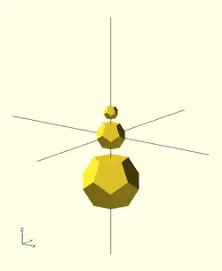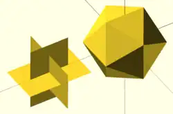 An icosahedron can be created from three orthogonal golden-ratio rectangles inside a hull() operation, where the golden ratio is .