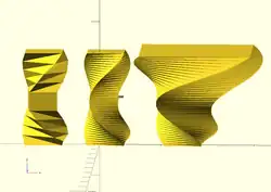 Example Linear Extrude of a rectangle with twist and scale following part of a sine curve function