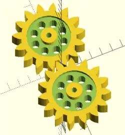 - twist Twist in linear extruding. Used for making helical gears. (e.g.chevron/herringbone or worm drive gears)
