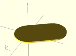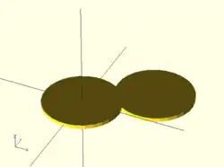 Referring to the illustration of a convex hull of two cylinders, it is computationally more efficient to use hull() on two 2D circles and linear_extrude the resulting 2D shape into a 3D shape, rather than using hull() on two cylinders, even though the resulting object appears identical. Complex geometries involving hull() can be rendered faster by starting out in 2D, if possible.
