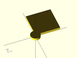%cube([x,y,z]); // corner of cube should coincide with end of cylinder