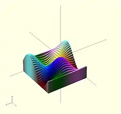 cube( size = [1, 1, 11+10*cos(10*i)*sin(10*j)] );