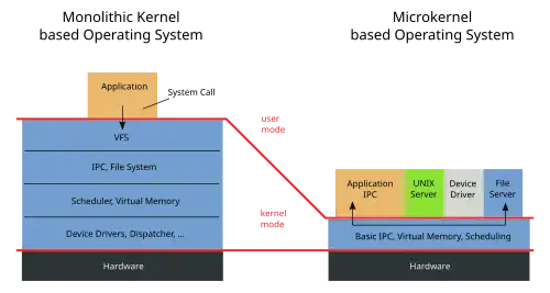 The microkernel approach is to define a very simple abstraction over the hardware, with a set of primitives or system calls to implement minimal OS services such as thread management, address spaces and interprocess communication. All other services, those normally provided by the kernel such as networking, are implemented in user-space programs referred to as servers. Servers are programs like any others, allowing the operating system to be modified simply by starting and stopping programs. For a small machine without networking support, for instance, the networking server simply isn't started. Under a traditional system this would require the kernel to be recompiled, something well beyond the capabilities of the average end-user. In theory the system is also more stable, because a failing server simply stops a single program, rather than causing the kernel itself to crash.