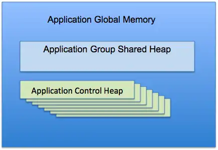 Partitioning is covered later in Chapter 4. It is introduced here as it relates to Application Global Memory. One of the ways partitioning is made more efficient is that application logic can be local at the application level (in Agent Private Memory), or at the partition level in Application Global Memory – this way processing for a specific partition can be handled within that partition at the application level, but processing across the whole dataset can be abstracted up to the partition level. This has consequences for Application Global Memory, and one of these consequences is that there needs to be memory allocated to each application – the Application Control Heap, and memory allocated to all applications, the Application Group Shared Heap.