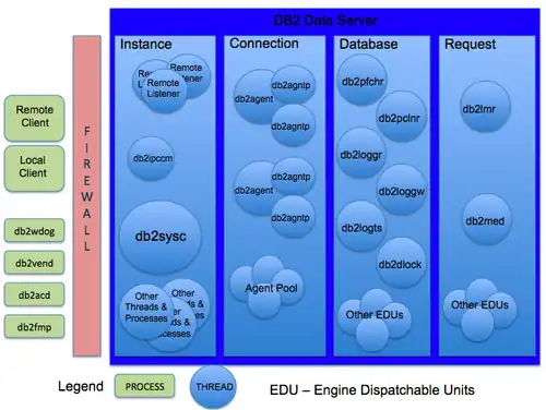 Oracle and DB2, Comparison and Compatibility/Architecture/DB2