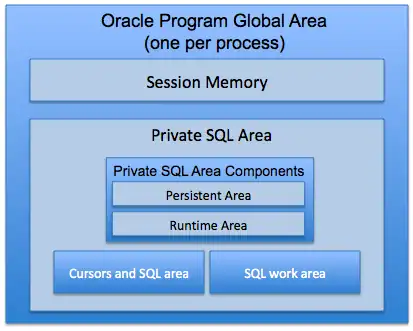 There is a usage overlap between the SGA and PGA for Private SQL Areas. The Private SQL Area operates the same way in the PGA as it does in the SGA, the only difference being in how the server is configured. If the server is dedicated, the private SQL area is held in the PGA, if the server is shared it is held in the SGA.