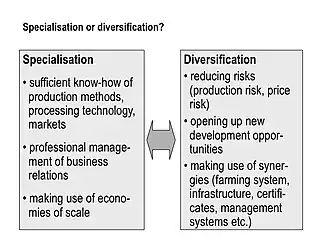 - As a certain degree of specialisation is needed in order to be successful, carefully weigh the advantages and disadvantages of diversifying your business.