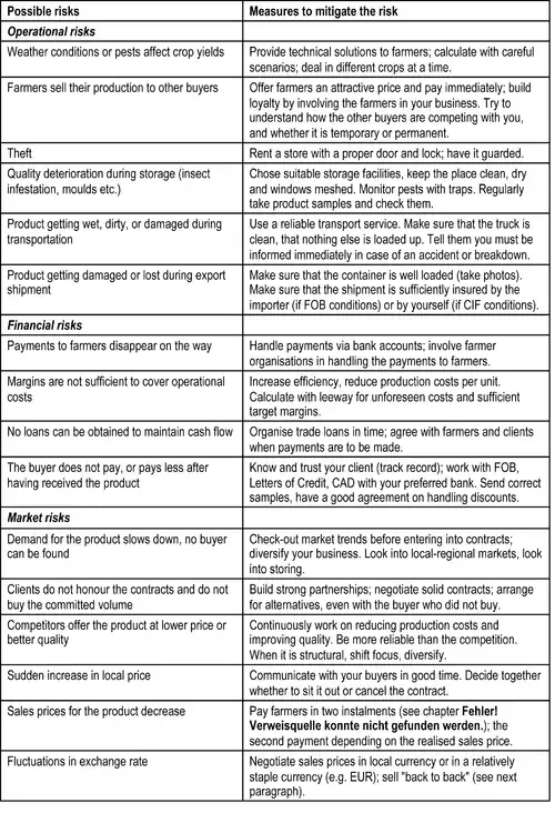 - Limit your entrepreneurial risk by buying from farmers only at a certain farm-gate price if you have the respective sales contracts for most of this volume.