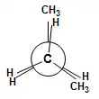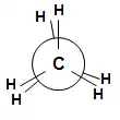 | In the following drawings, methyl groups are on the front and back ends of the molecule and a circle represents all that lies between. |