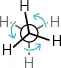 Lets look at a Newman projection of butane as it rotates counterclockwise around its axes.