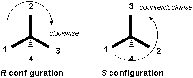 A counterclockwise direction is an S (sinister, Latin for left) configuration. A clockwise direction is an R (rectus, Latin for right) configuration.