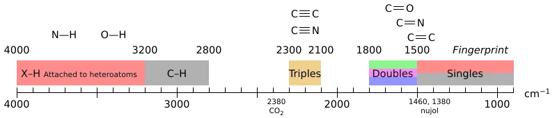 | Bond | Minimum wavenumber (cm-1) | Maximum wavenumber (cm-1) | Functional group (and other notes) |